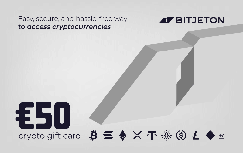 - Kaufen Sie eine BitJeton-Geschenkkarte im Wert von 50 € und erwerben Sie sofort bekannte Kryptowährungen.
