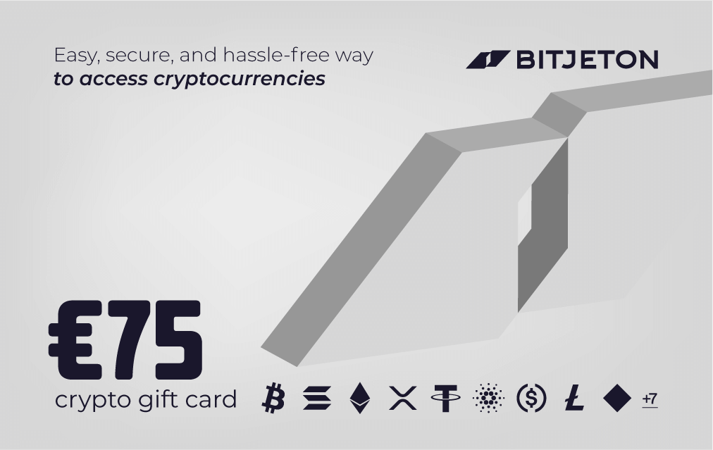 - Kaufen Sie eine BitJeton-Geschenkkarte im Wert von 75 € und erwerben Sie sofort sicher verschiedene Arten von Kryptowährungen.