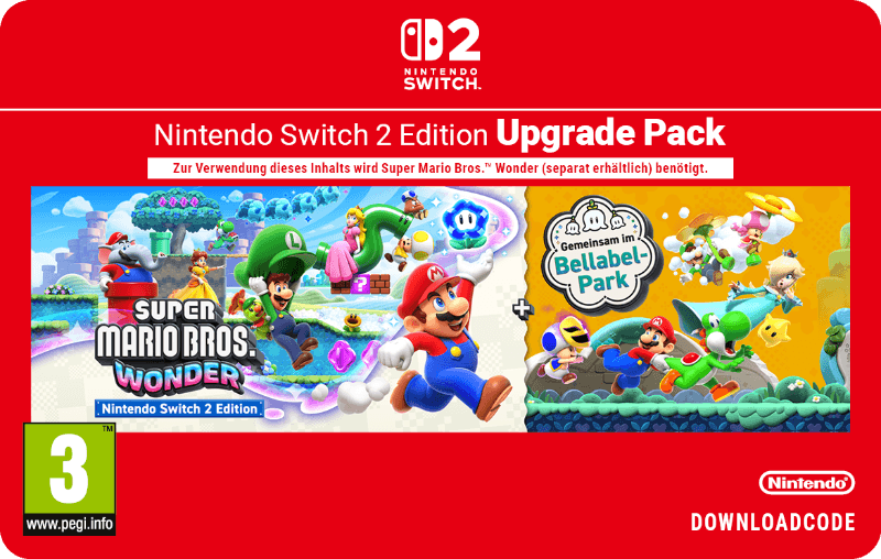 Dieses Upgrade wandelt dein Exemplar von Super Mario Bros. Wonder in die Switch 2-Version um, die ein brandneues Gebiet und viele technische und Gameplay-Upgrades enthält. Die Originalversion des Spiels bleibt auf deiner Nintendo Switch spielbar.