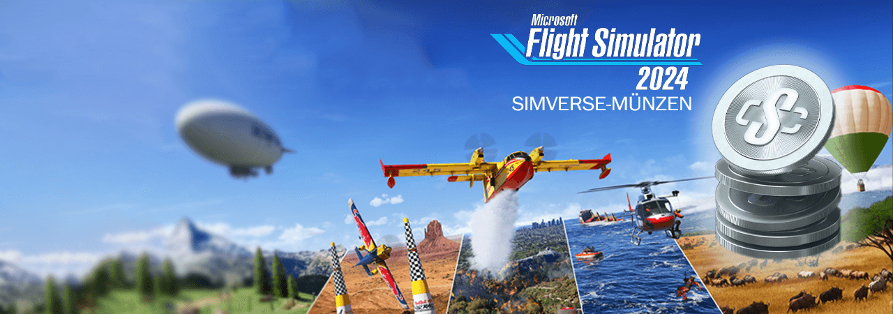 Simverse Münzen sind die Ingame-Währung für Microsoft Flight Simulator und werden für den Kauf von Add-ons und Inhalten im Ingame-Marktplatz genutzt.